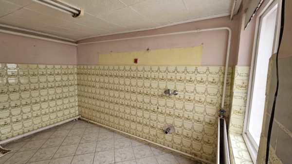 A fürdőszoba újra csempézésre került, a wc külön helyiségben található, ott maradtak a régi típusú ablakok.